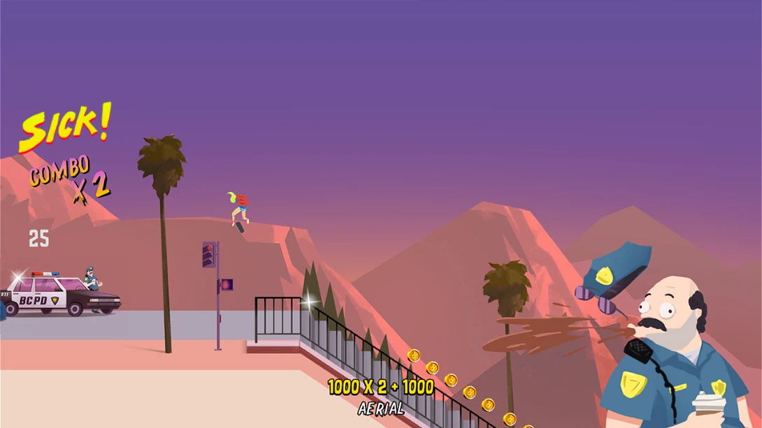 游戏采用横版斜向视角,结合虚拟按键与重力感应双操作方式,提升操控灵活性。部分版本引入真实物理引擎模拟滑板动效,强化动作流畅度与打击感。