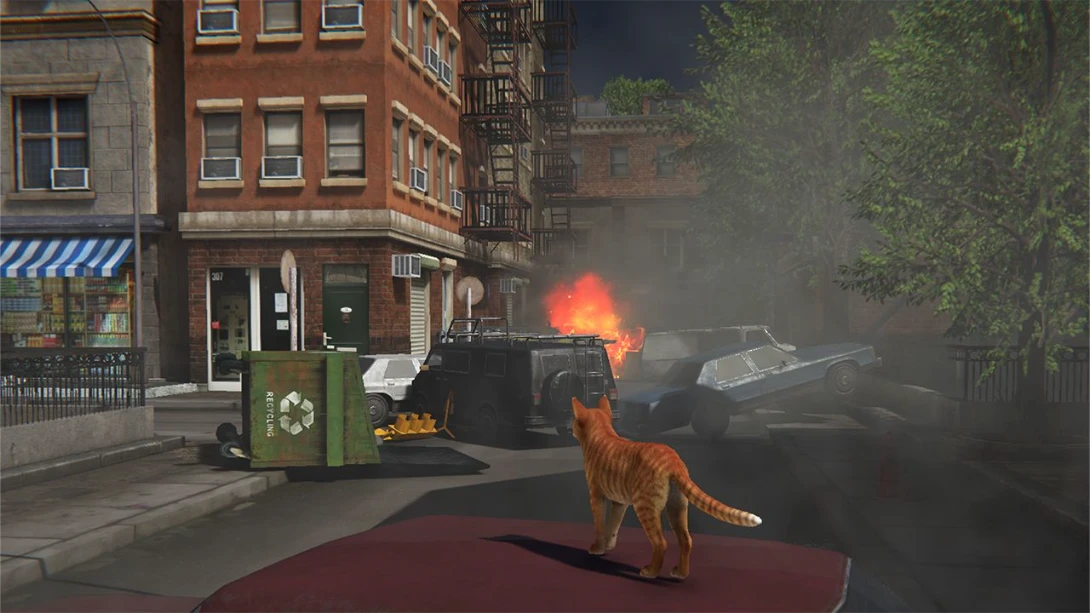 游戏设定在一个寂静破败的城市,街道空无一人,灯光黯淡,曾经的人类文明已被未知存在接管。玩家需操控流浪猫角色,利用敏捷的身手和环境掩护完成任务: